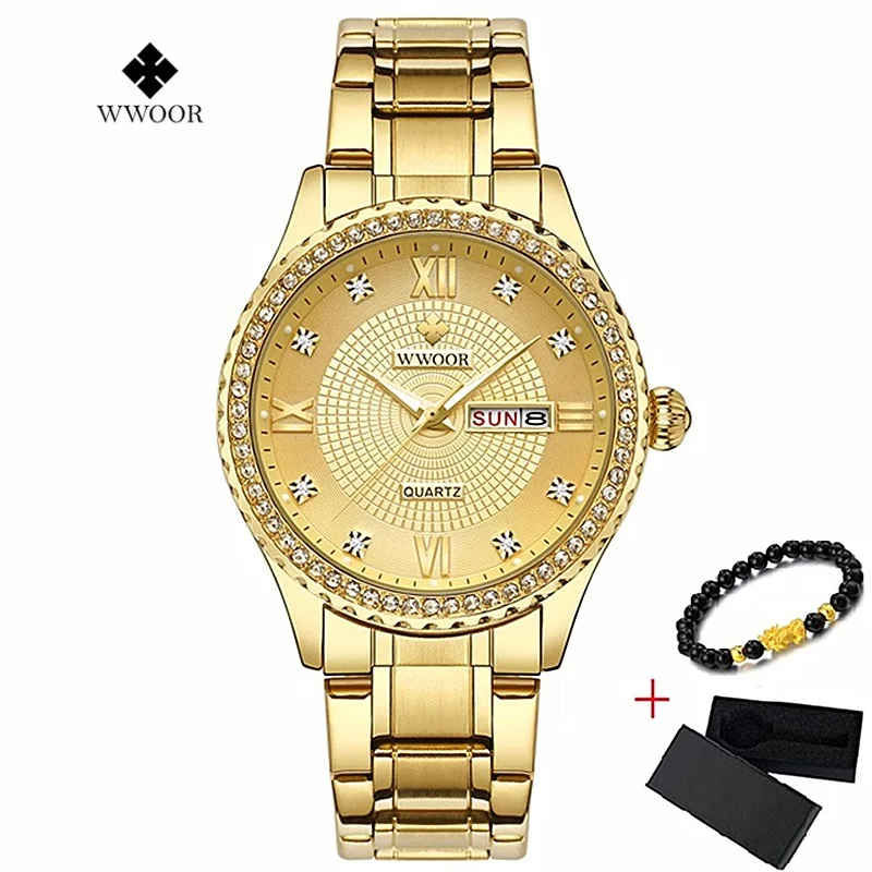 Special Offer WWOOR Nieuwe Goud Vrouwen Armband Horloges Waterdicht Dameshorloge Rvs Casual Jurk Vrouw Quartz Horloge Vrouwen Klok Mujer Discount 90% Today!