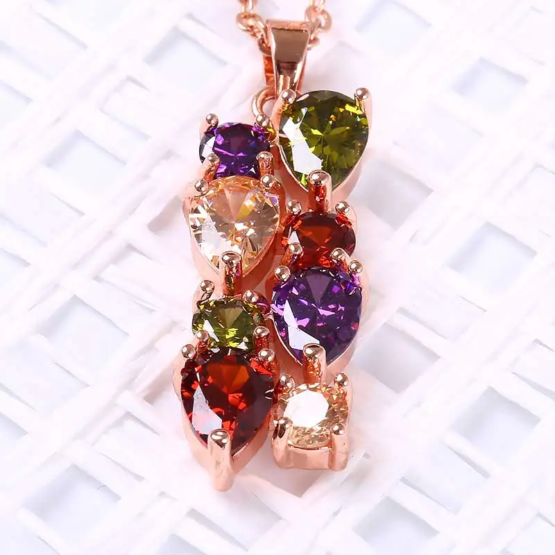 Special Offer FYM mode Mona Lisa Rose Goud Kleur Sieraden Sets voor Vrouwen Kleurrijke Crystal Ketting Oorbellen Armband Multicolor Sieraden Set Discount 0% Today!