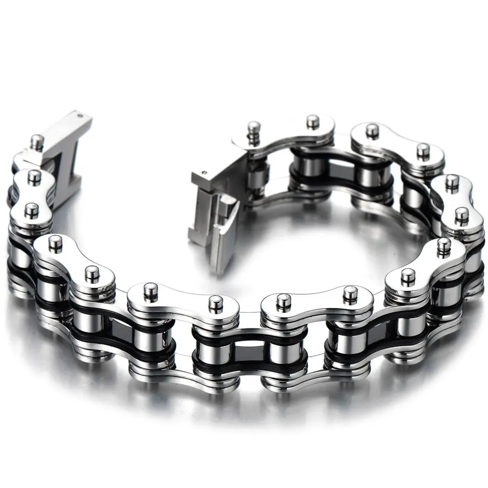 Special Offer Punk zwarte Fiets Armbanden Bangles Motorfiets Keten mannen Zwarte Armband Mannen Roestvrij Staal Biker Mannen Sieraden Discount 0% Today!