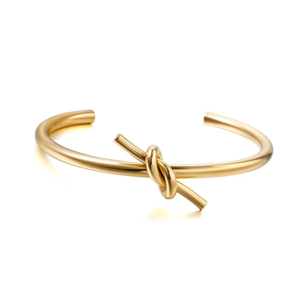 Special Offer Trendy Ronde Circulaire Rvs Open Knoop Manchet Bangle Armbanden Voor Vrouwen Elegant Goud Kleur Sieraden Armbanden Voor Vrouwen Discount 19% Today!