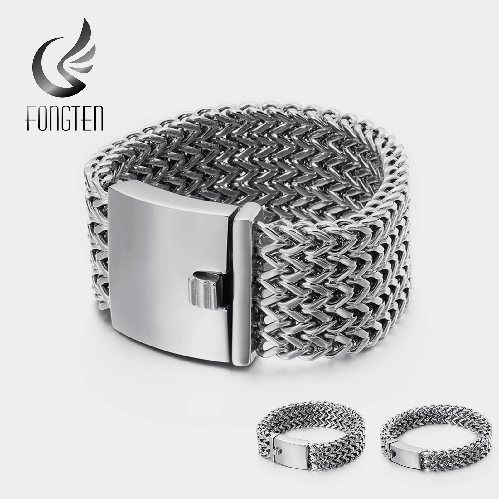 Special Offer Fongten Mesh Link Chain Armband Mannen Zilveren Vintage Metalen Stalen Armbanden Jongen Discount 20% Today!
