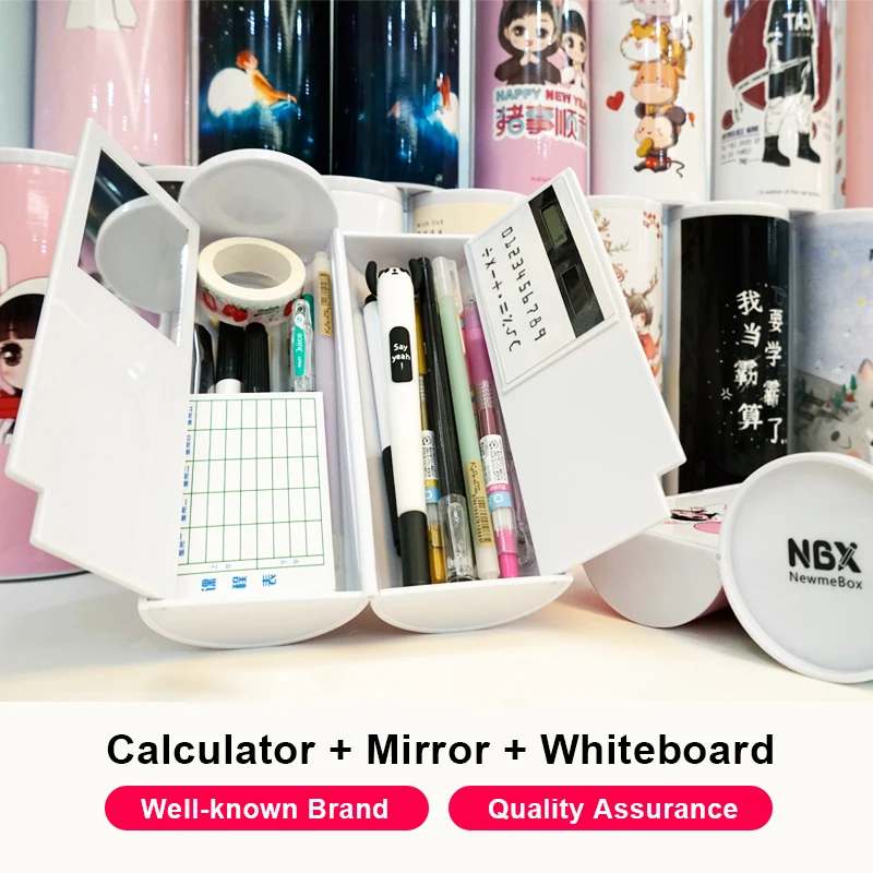 Special Offer Etui Briefpapier Doos Pen Houder High Tech Multifunctionele Japanse School Potlood Tas Met Rekenmachine Spiegel Grote Capaciteit Discount 29% Today!