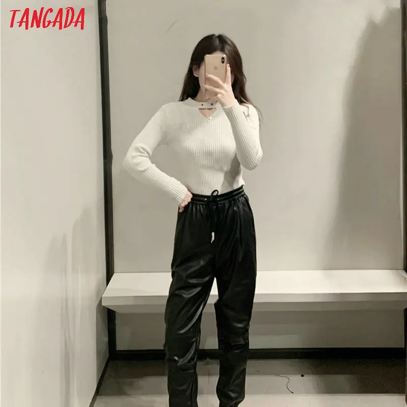 Special Offer Tangada Vrouwen Patchwork Zwart Pu Broek Strethy Taille Vrouwelijke Vriendje Stijl Faux Lederen Broek Broek 6A107 Discount 30% Today!