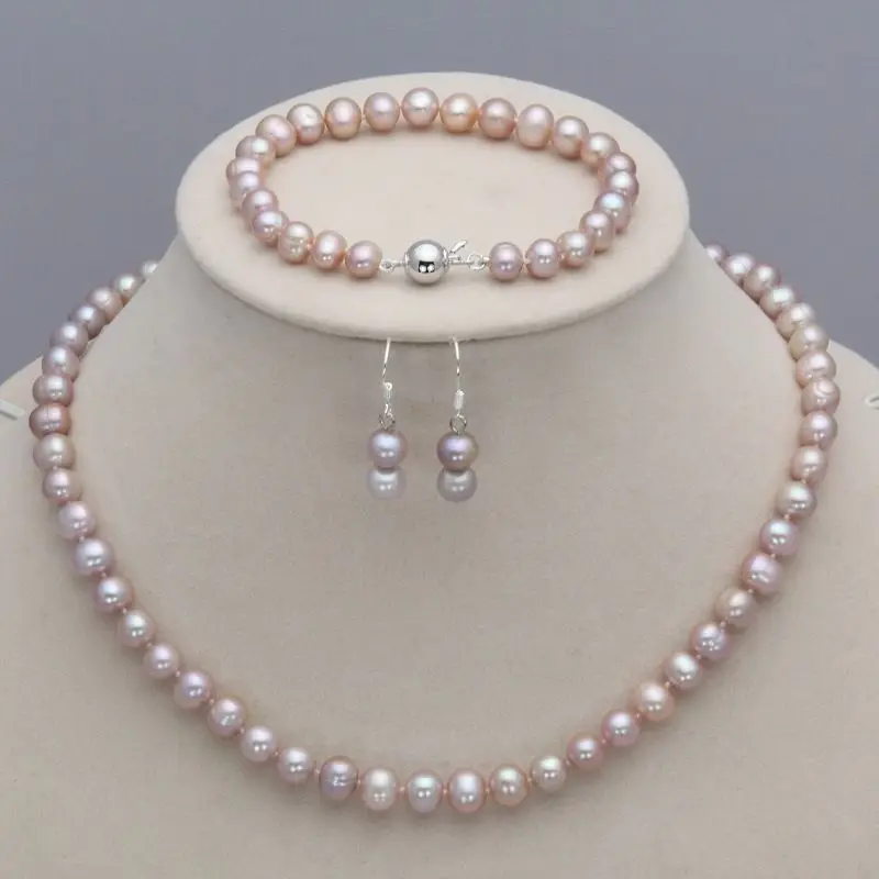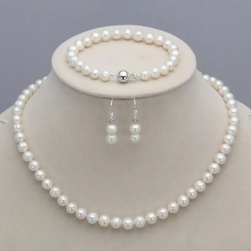 Special Offer Nieuwe 7 8mm Natuurlijke Zoetwater Parel Ketting Armband Oorbellen Set Discount 30% Today!