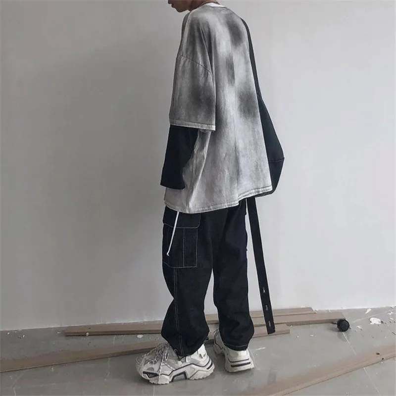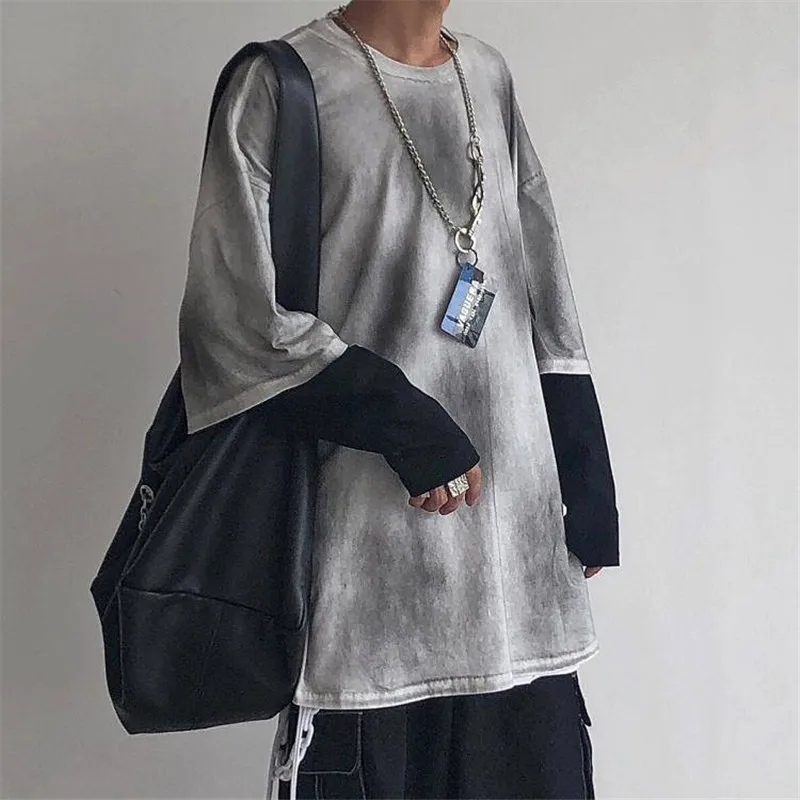 Special Offer Hip Hop Tshirt Streetwear Cool Print T shirts Mannen Vrouwen Lente Lange Mouw Losse T shirt Jongens Nep Twee Stuk T shirts Grappig Discount 30% Today!