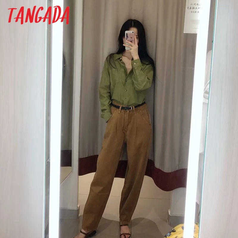 Special Offer Tangada mode vrouwen losse schade jeans broek jongen vriend stijl lange broek zakken rits losse high street vrouwelijke broek 4M68 Discount 35% Today!