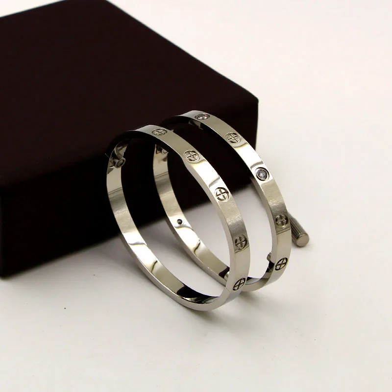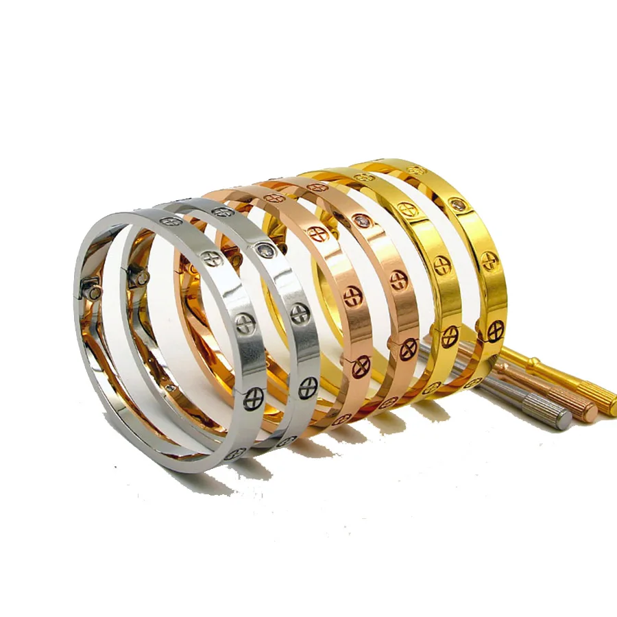 Special Offer Titanium Stalen Sieraden Schroevendraaier Schroef Liefhebbers armbanden Femme Crystal Manchet Armband Bangles Voor Vrouwen Mannen Pulseiras B015 Discount 37% Today!