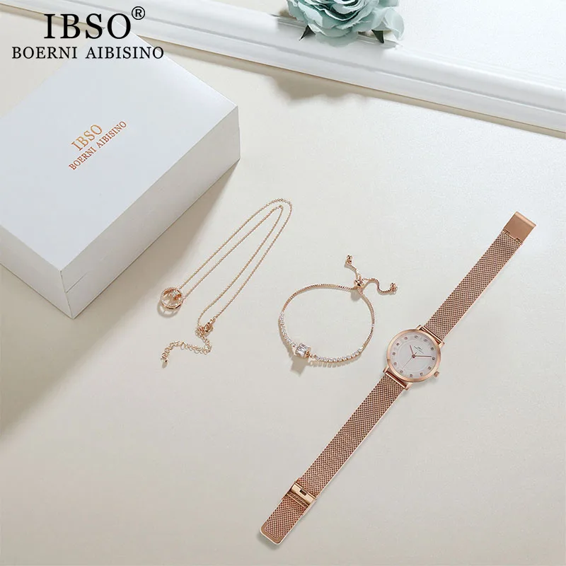 Special Offer Ibso Vrouwen Quartz Horloge Set Rose Gold Crystal Ontwerp Armband Ketting Horloge Sets Vrouwelijke Sieraden Set Horloge Dame Vrouw moeder Gift Discount 49% Today!