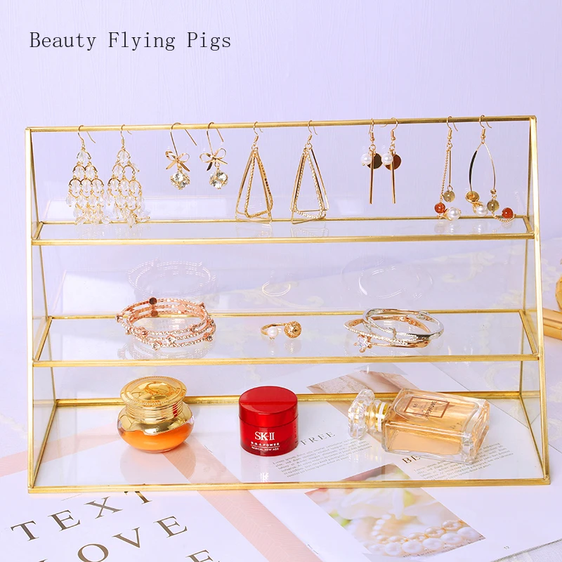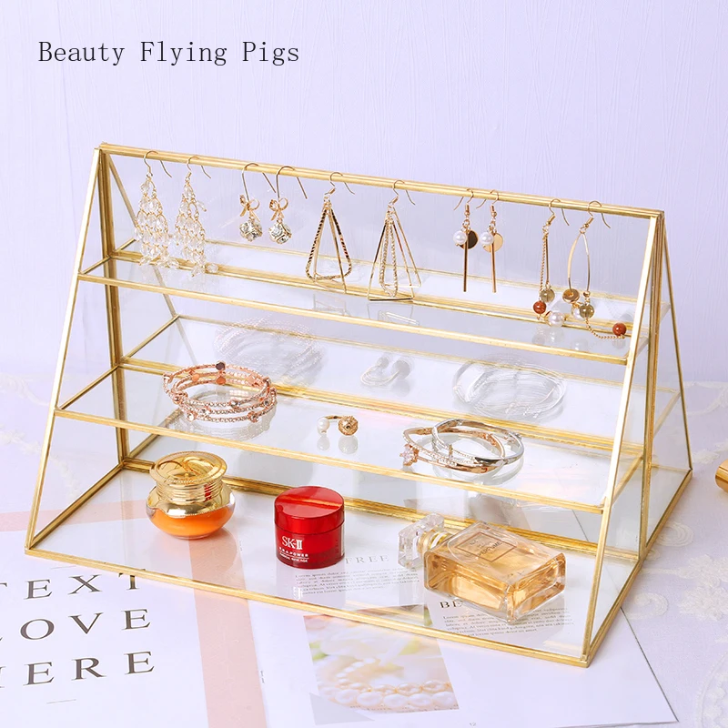 Special Offer 1Pcs Ins wind transparant glas parfum display stand Sieraden armbanden rack handgemaakte handgemaakte trapeziumvormige cosmetica opslag Discount 0% Today!