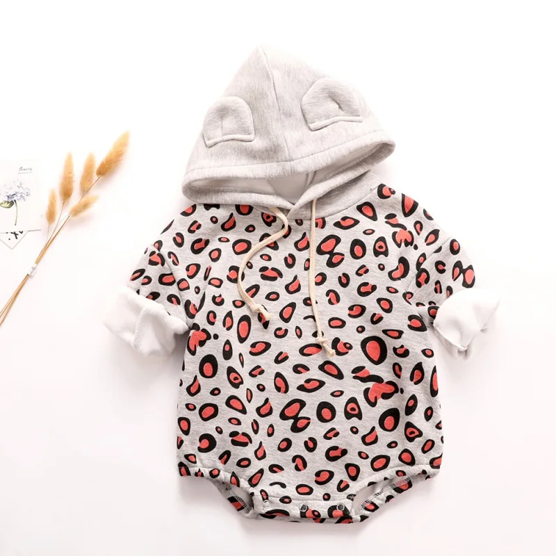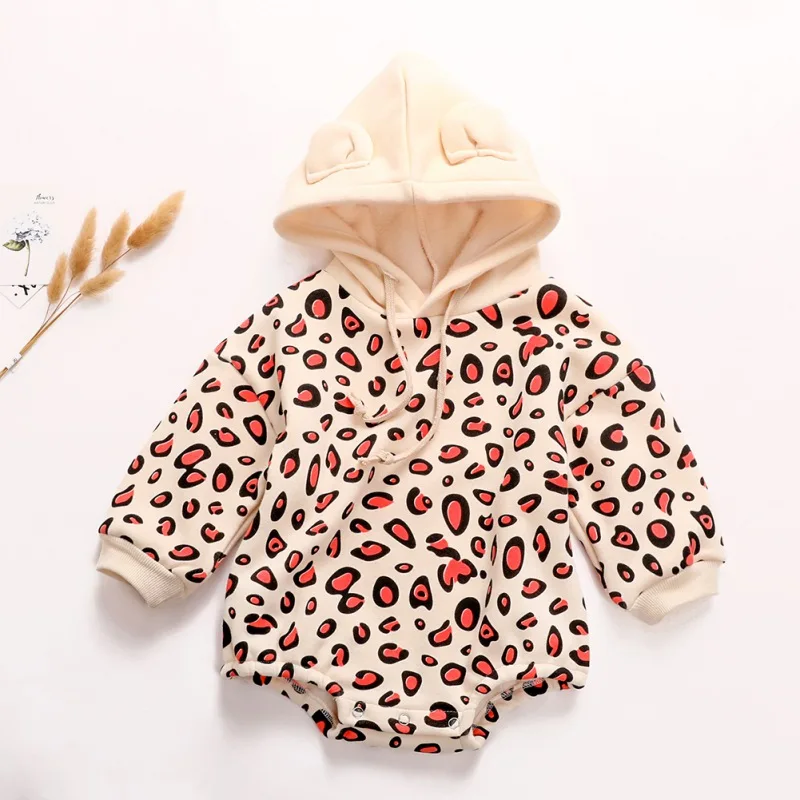 Special Offer Winter Baby Boy Meisje Romper Dikker Fluwelen Leopard Patroon Lange Mouwen Hoodie Pasgeboren Outfits Discount 22% Today!