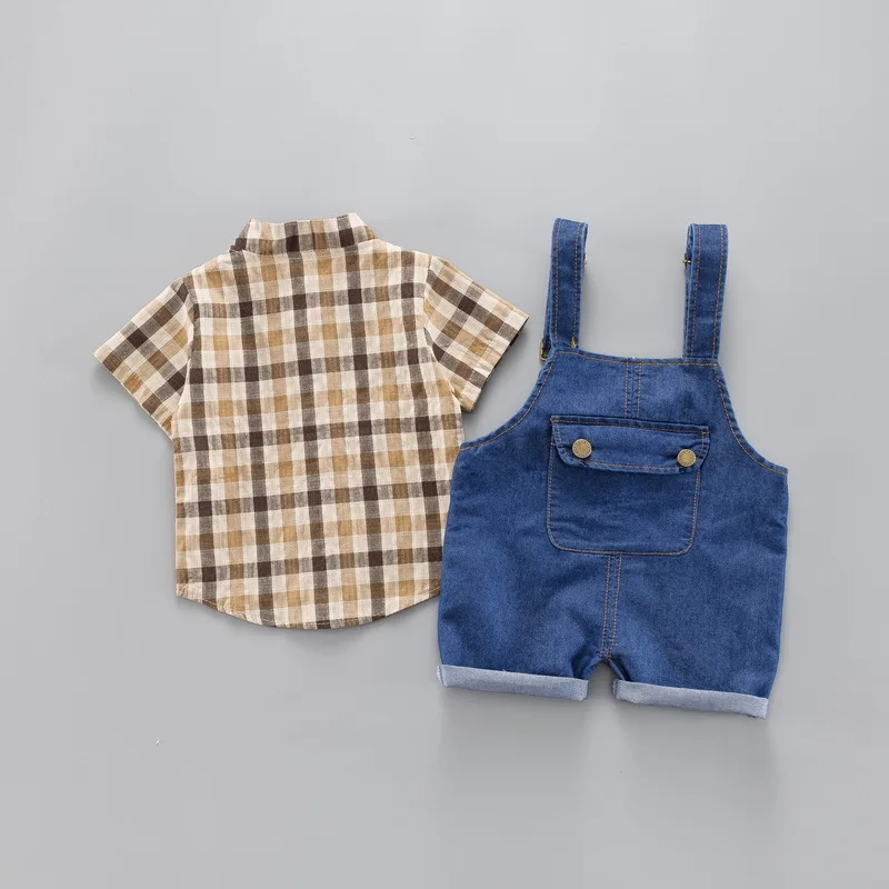 Special Offer Kleine Jongens Party Kleding Baby 2 stuks set Kleding Sets Kaki Plaid Shirt + Shorts Baby Outfits Set Baby Kleding Pak Discount 25% Today!