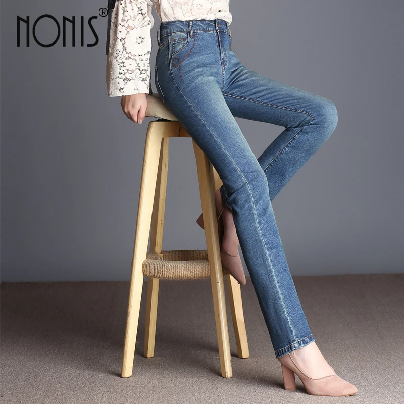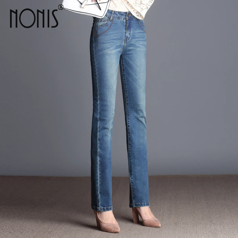 Special Offer Nonis Herfst Winter Jeans Femme Slanke Rechte Hoge Taille Katoen Plus Size Denim Jeans Vrouwen volledige lengte Broek Boyfriend Jeans Discount 30% Today!