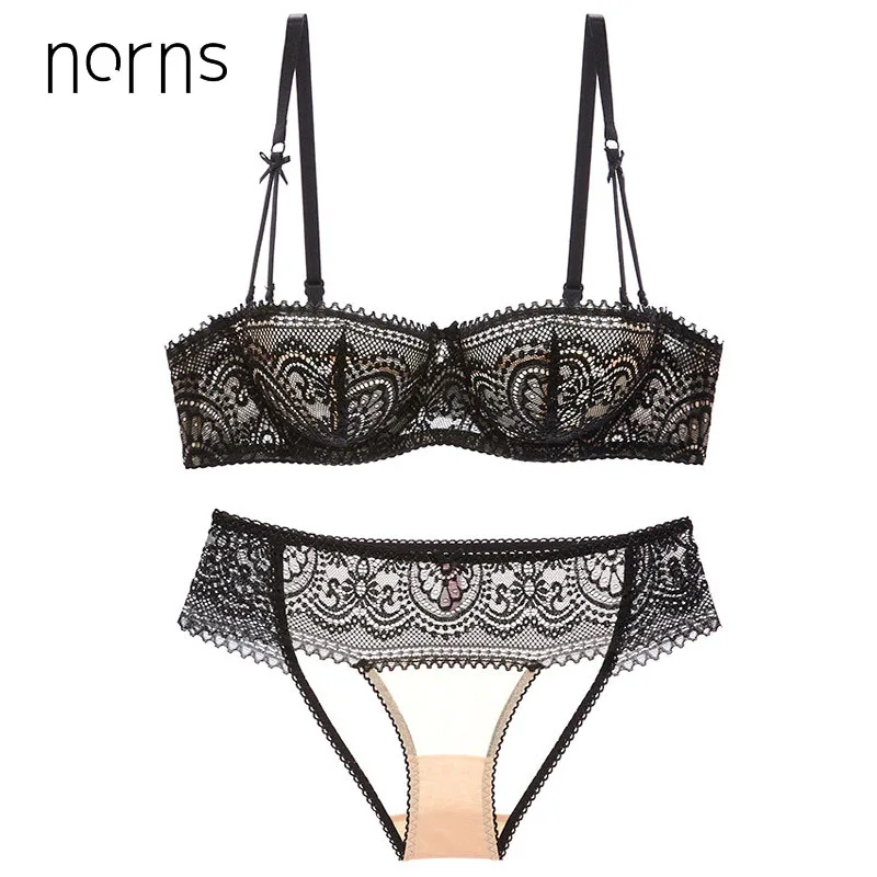 Special Offer Norns Ultra Dunne Half Cup Beha Plus Size D Cup Kant Transparante Bh Set Sexy Groen Lingerie Sets Vrouwen Hollow out Bra Discount 30% Today!