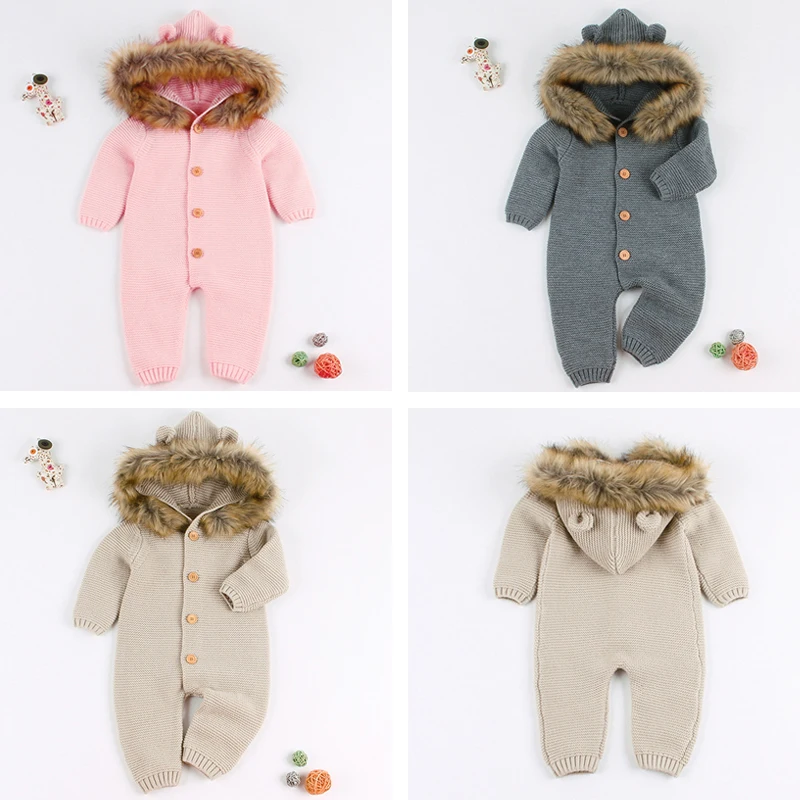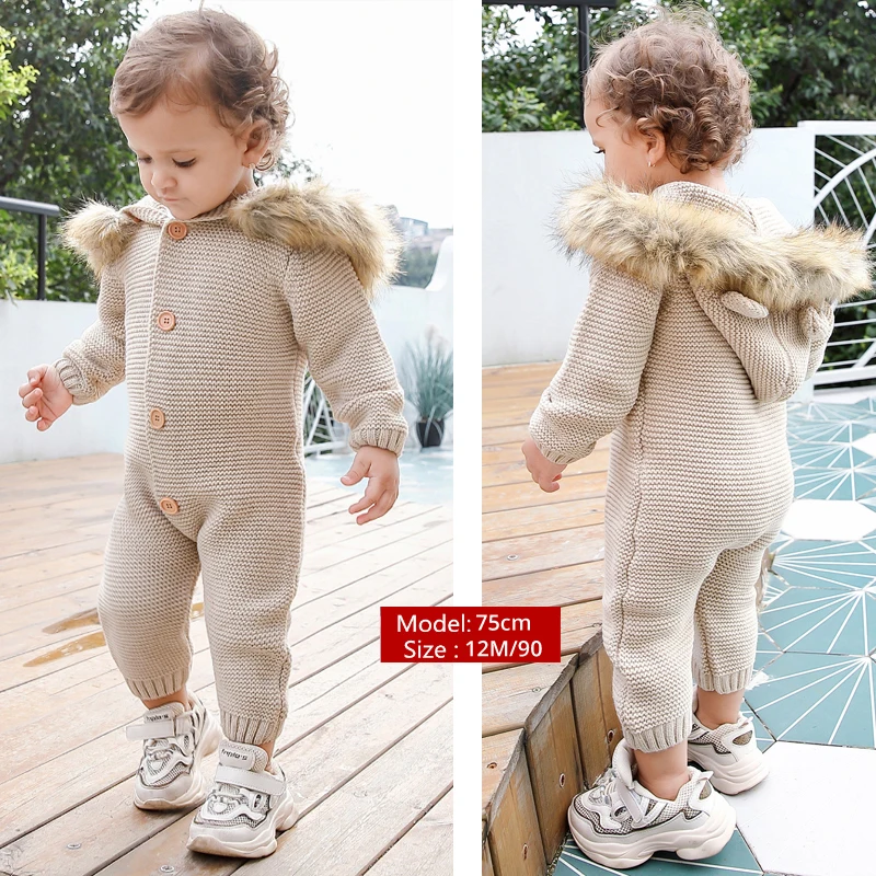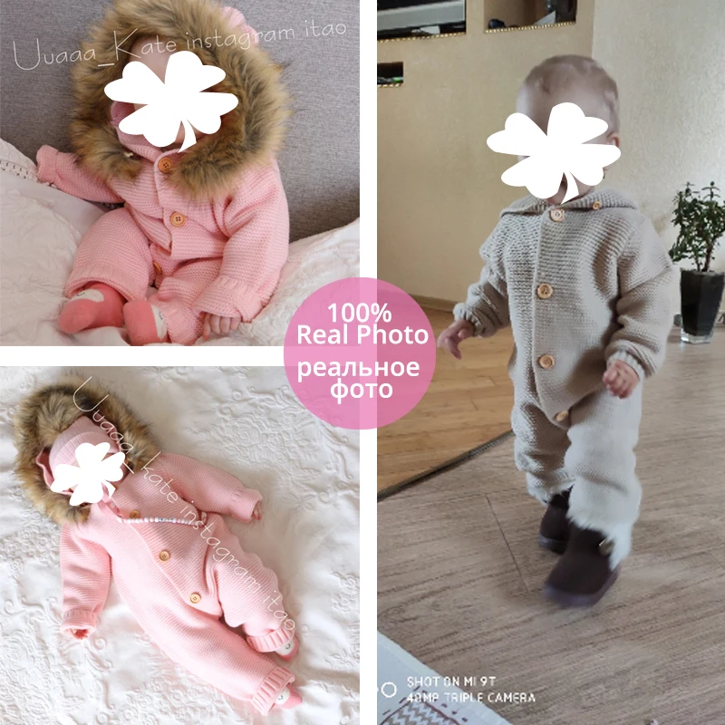 Special Offer IYEAL Nieuwste Baby Baby Rompertjes Winter Kleding Pasgeboren Baby Jongen Meisje Gebreide Trui Jumpsuit Hooded Fur Kid Peuter Bovenkleding Discount 32% Today!