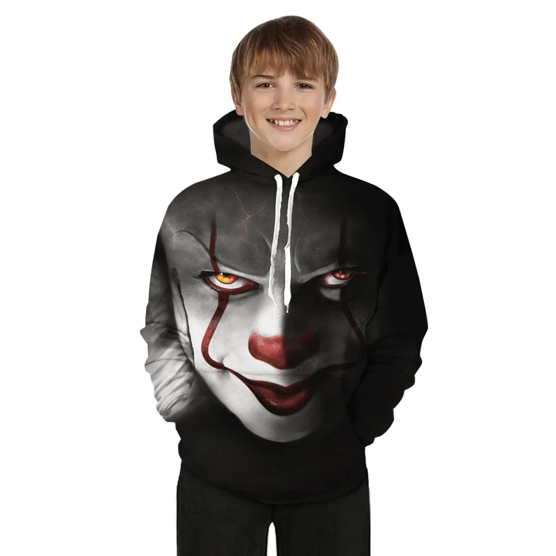 Special Offer 3D Afdrukken Clown Karakter Jongens Jas Katoen Dunne Gedeelte Hooded Jongens Sweatshirt Casual Losse Koord Kids Hoodies Discount 41% Today!