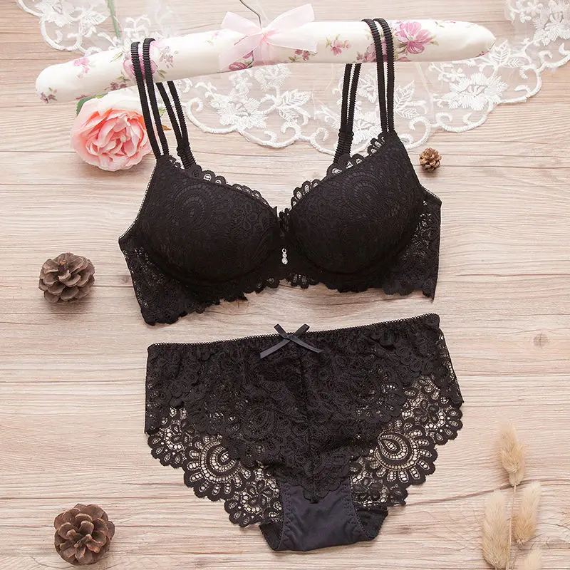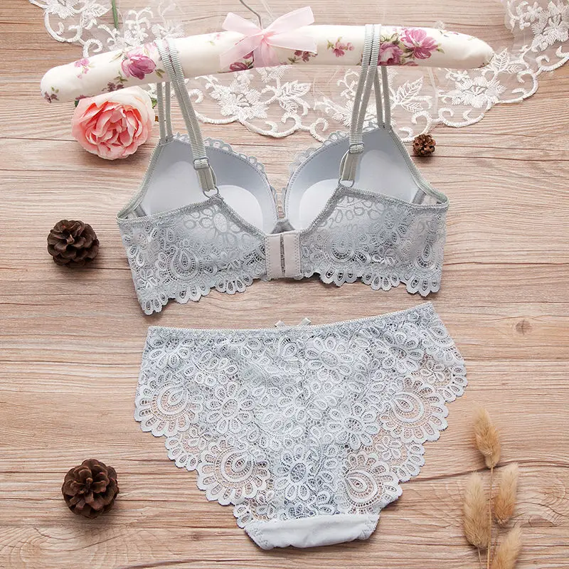 Special Offer Ondergoed Set Sexy Draad Gratis Beha Set Kant Lingerie Panty Set Intimi Vrouwen Sexy Geborduurde Lace Push Up Bh Een B Cup Discount 43% Today!