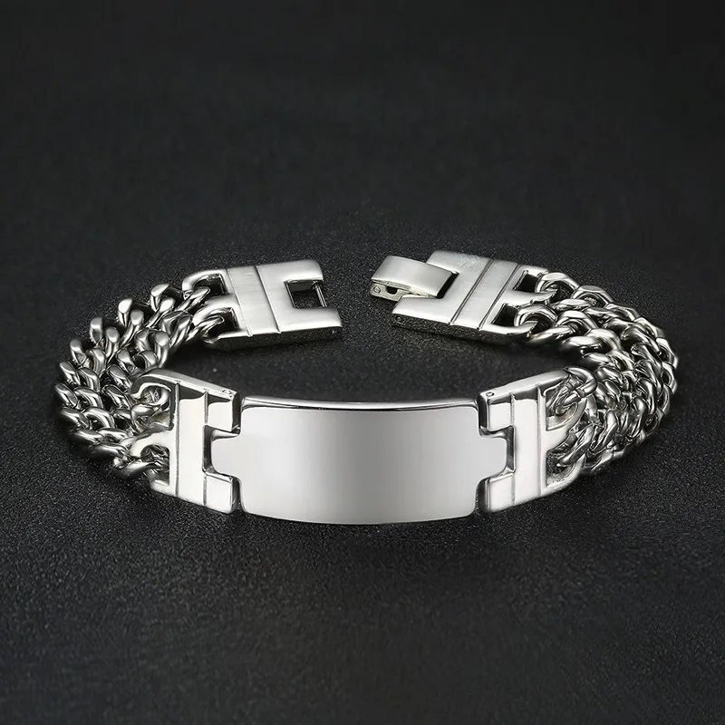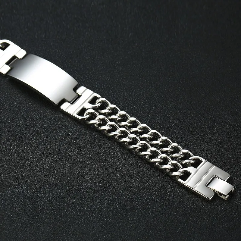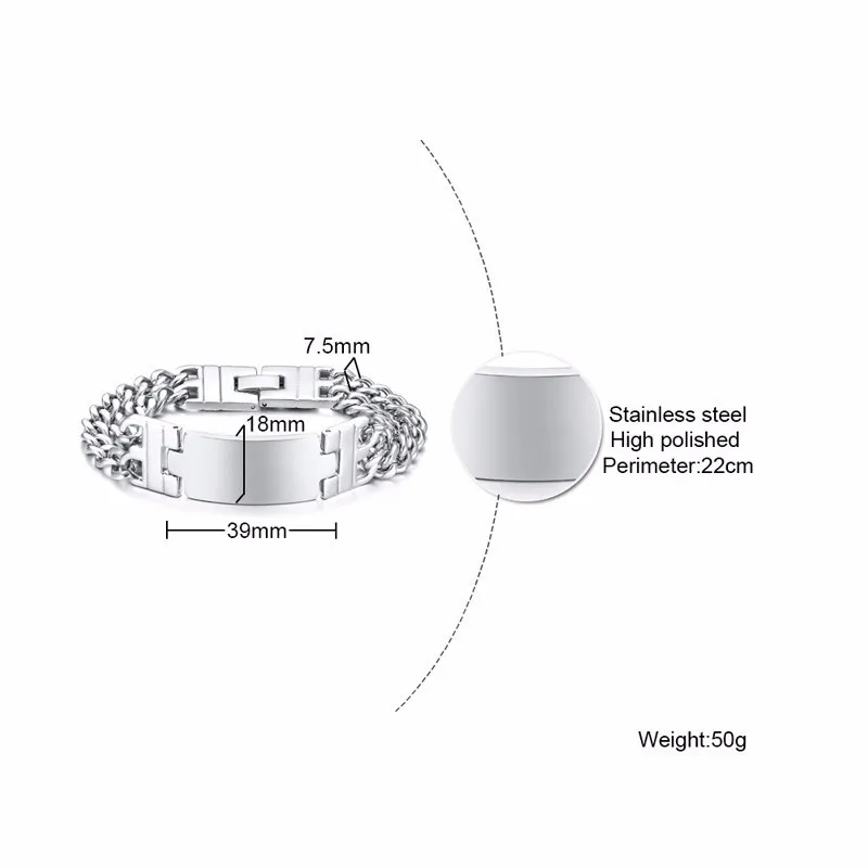 Special Offer Gepersonaliseerde 18 Mm Heren Rvs Dubbele Curb Chain Link Id Identiteit Armband In Zilver Mannelijke Sieraden Discount 45% Today!