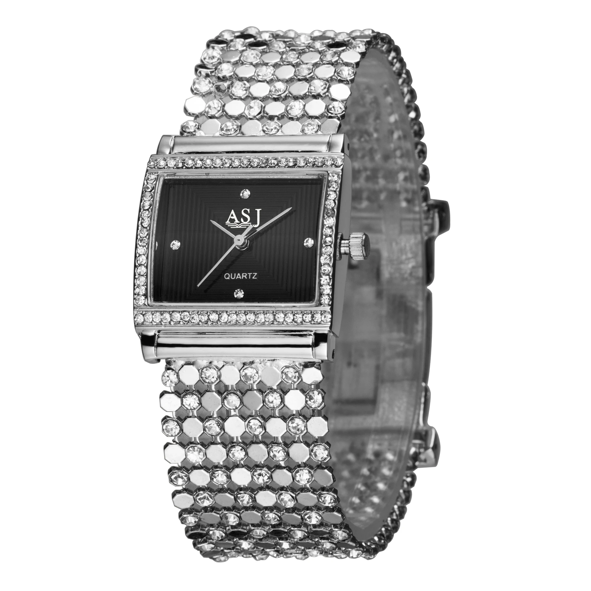 Special Offer Vrouwen Delicate Vierkante Case Diamant Zilver Goud Staal Luxe Quartz Armband Horloge, 2016 Japan Beweging Vrouwen Strass Horloge Discount 45% Today!