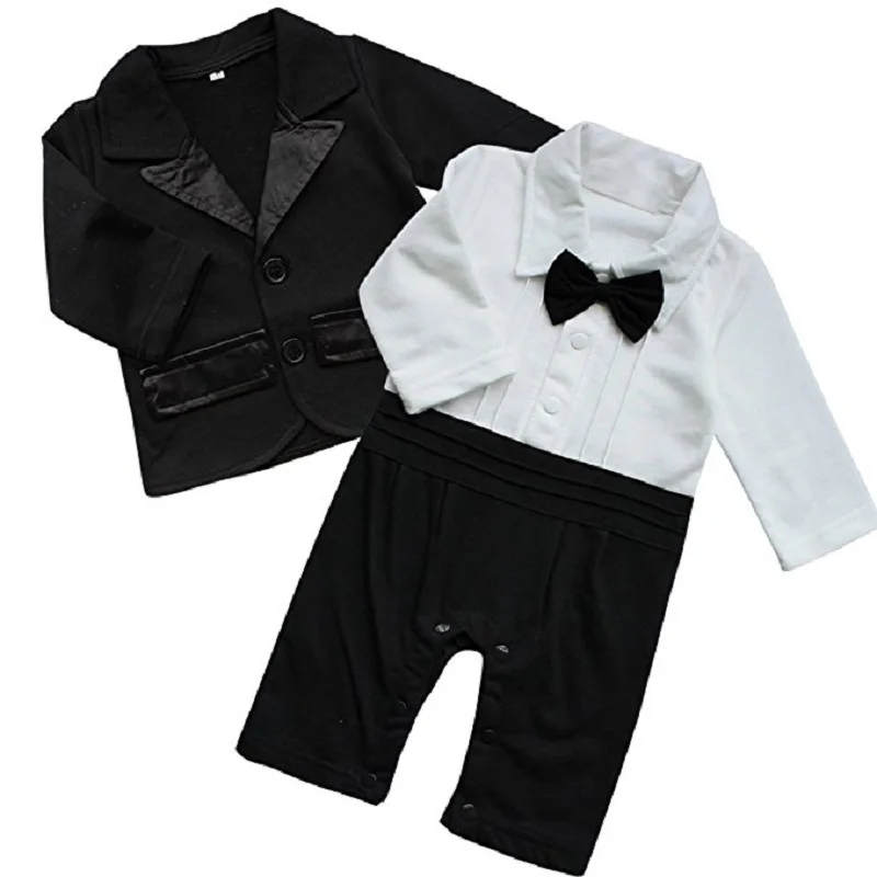 Special Offer Gentleman Babykleding Jongen Rompertjes + Jas 2 stks Baby Jongens Kleding Outfits Set Pasgeboren Party Wedding Formele Smoking Pak merk Discount 47% Today!