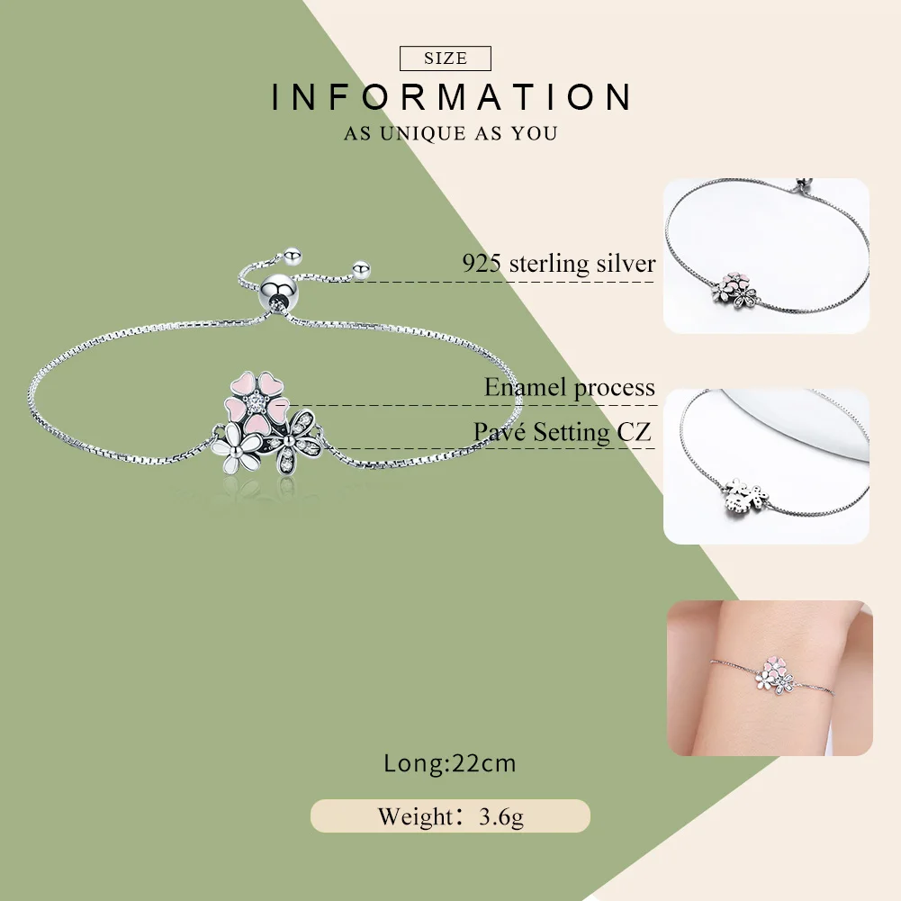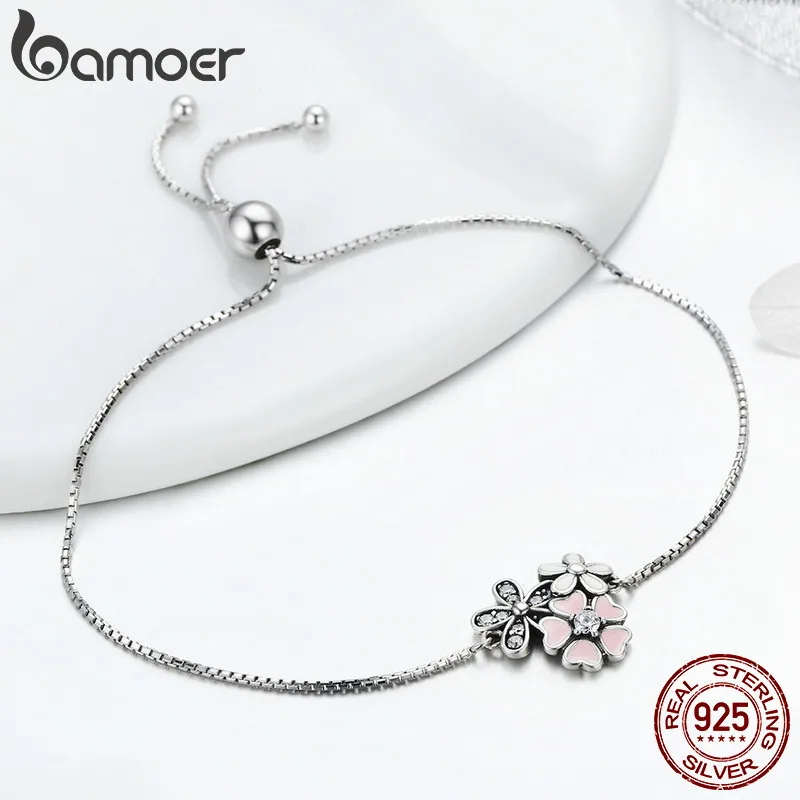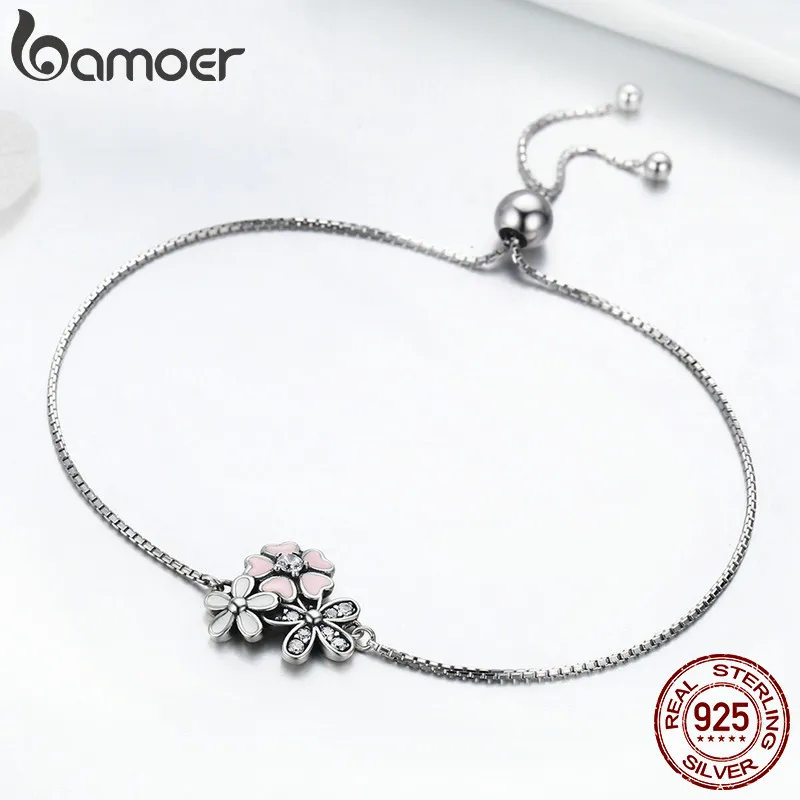 Special Offer Bamoer Mode Nieuwe 100% 925 Sterling Zilver Cherry Daisy Flower Chain Link Vrouwen Armband Sterling Zilveren Sieraden Gift SCB055 Discount 70% Today!