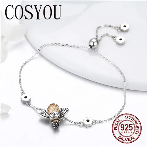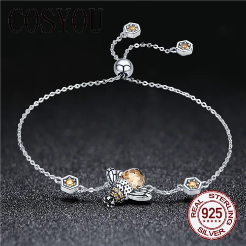 Special Offer COSYOU Echt 100% 925 Sterling Zilver Dansen Honey Bee Chain Link Vrouwen Armband Kristal Grote Steen Armband Sieraden SCB043 Discount 0% Today!