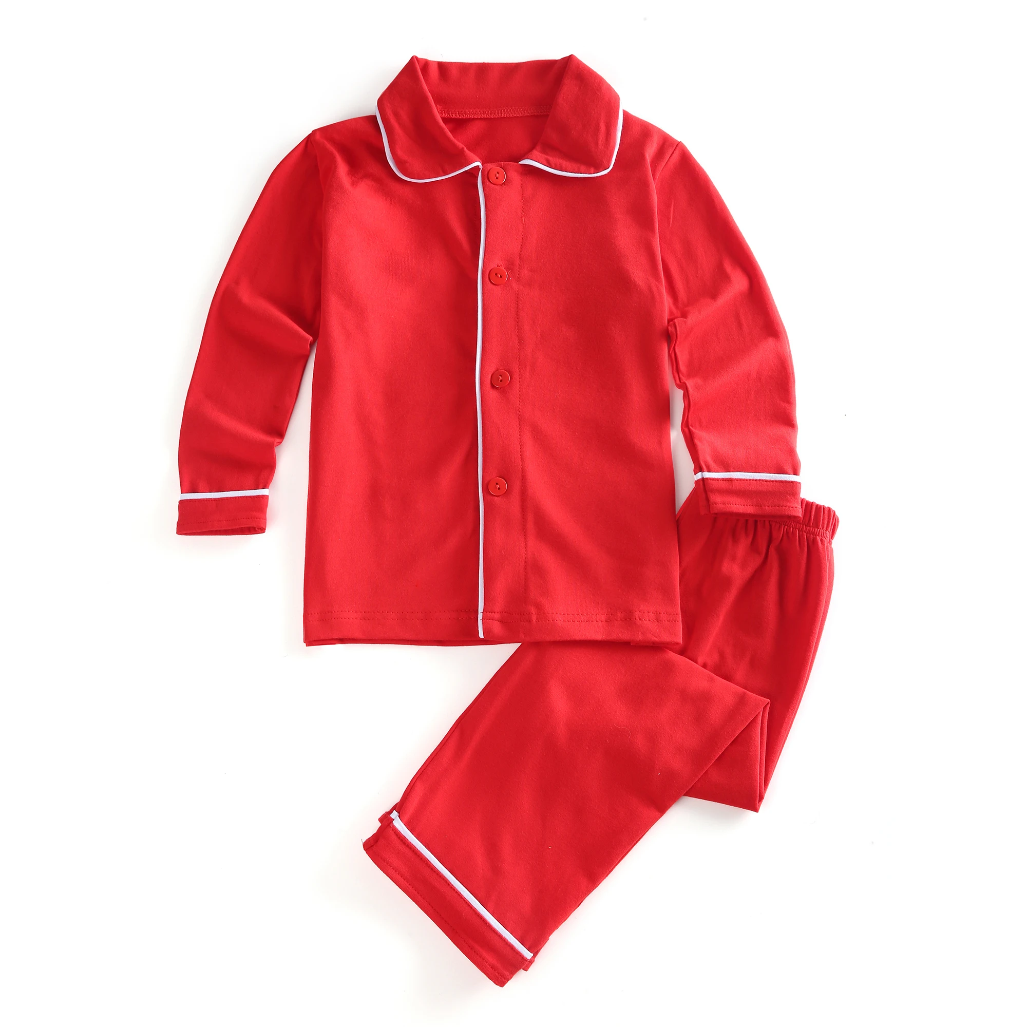 Special Offer 100% katoen marine effen kleur Jongens Meisjes nachtkleding knop Familie broers Bijpassende Kinderen Kerst Ruffle kids pyjama Discount 18% Today!