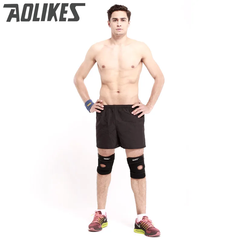Special Offer Ademende kniebeschermers met 4 Springs Ondersteuning silicagel Brace Bescherm Verstelbare Patella Fietsen Running Knie Protector Rodiller Discount 29% Today!