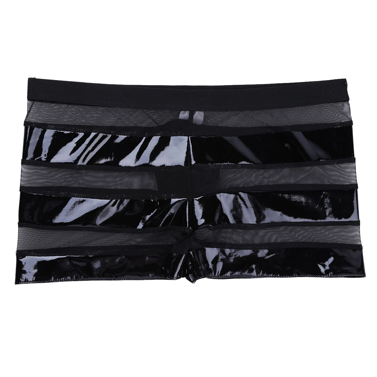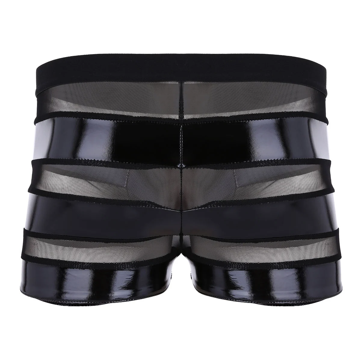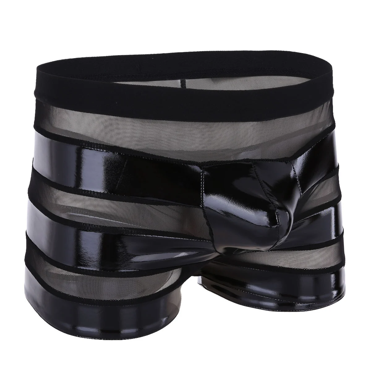 Special Offer Mens Sissy Ondergoed Wetlook Leather Boxershorts Mesh Patchwork Streep Low Rise Hot Sexy Exotische Ondergoed Mannelijke Lingerie Slipje Discount 33% Today!
