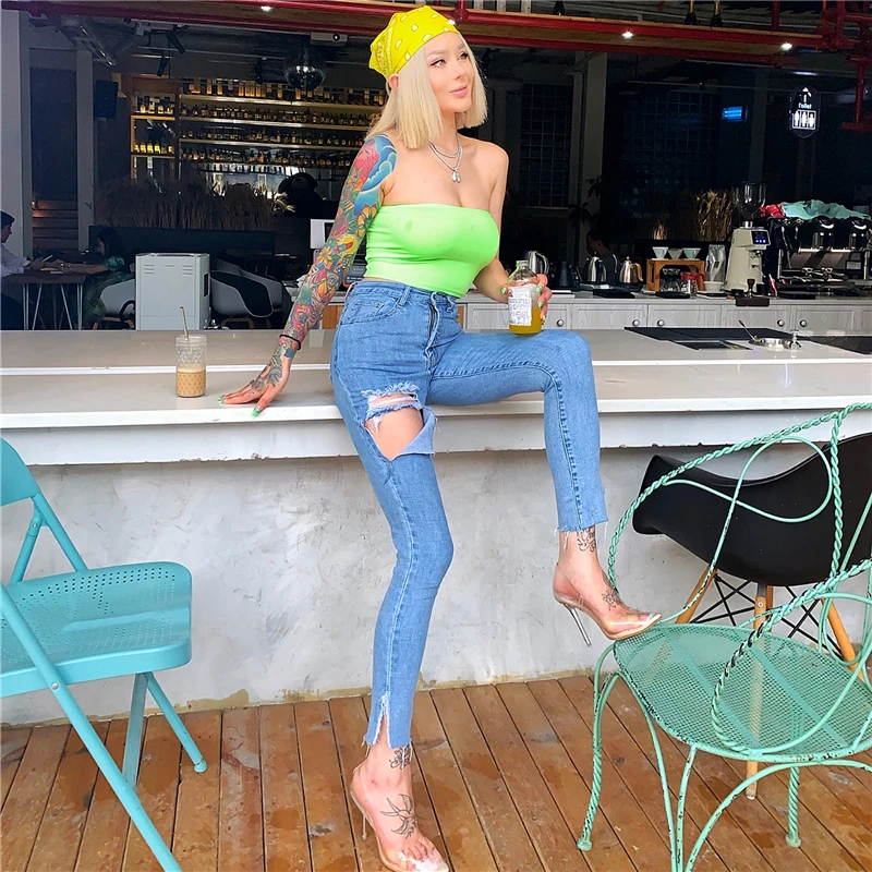 Special Offer Nieuwe Jeans Vrouwen Terug Zipper Slim Hoge Taille Denim Blauw Shinny Potlood Broek Vriendje Gat Jeans Voor Vrouwen Streetwear 2019 hot Discount 40% Today!