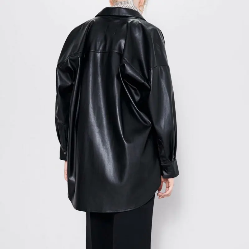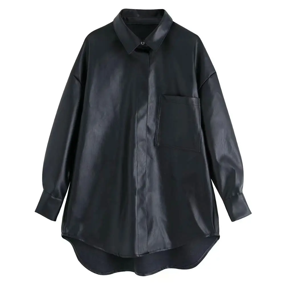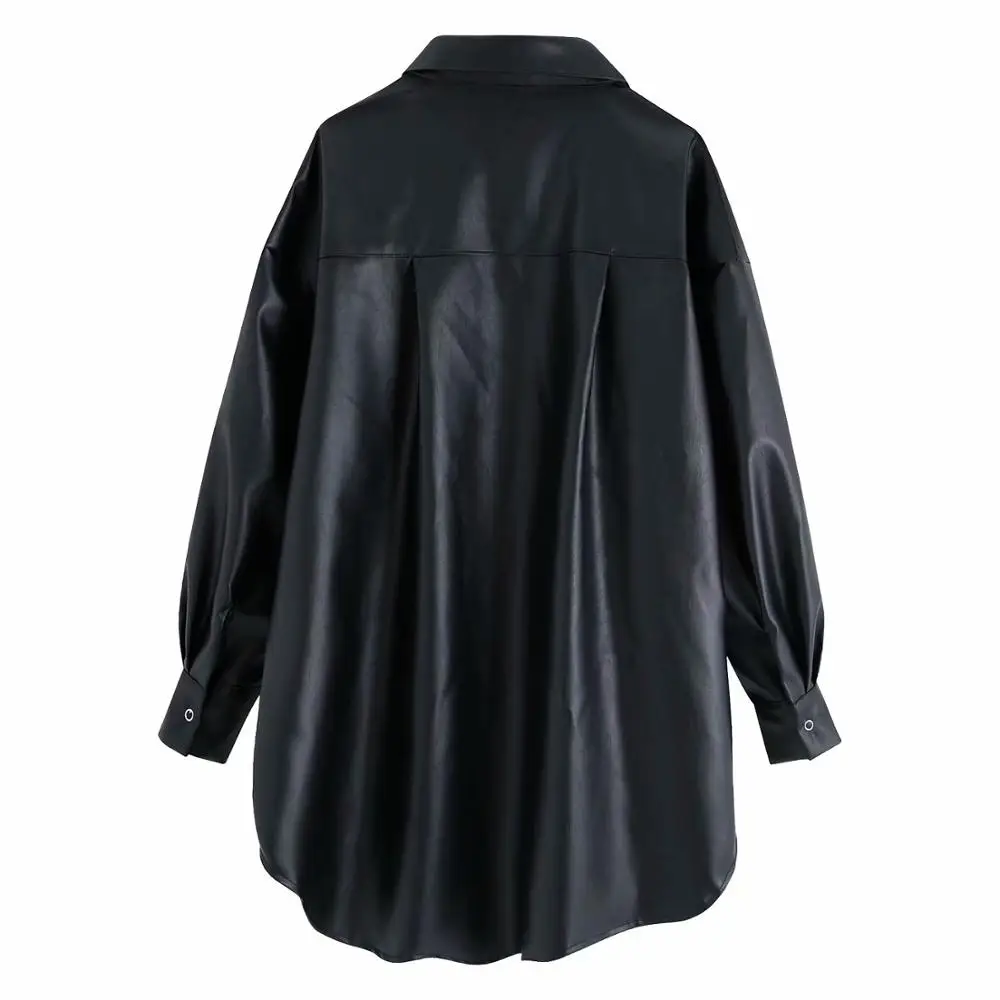 Special Offer 2020 Nieuwe Herfst Vrouwen Mode Nep Kunstleer Turn Down Kraag Blouses Shirts Lady Vriendje Losse Packet Elegante Knoppen Tops Discount 41% Today!