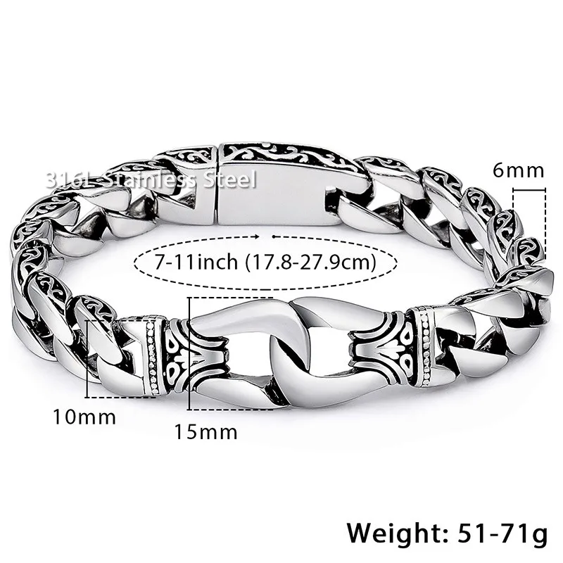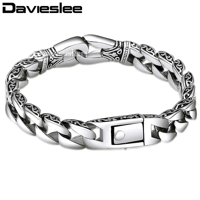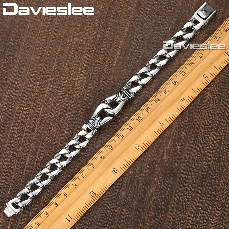 Special Offer Davieslee Heren Armband Chain 316L Rvs Punk Armbanden voor Mannen Gebogen Zilver Kleur Curb Chains Cubaanse Link 15mm LHB10 Discount 44% Today!