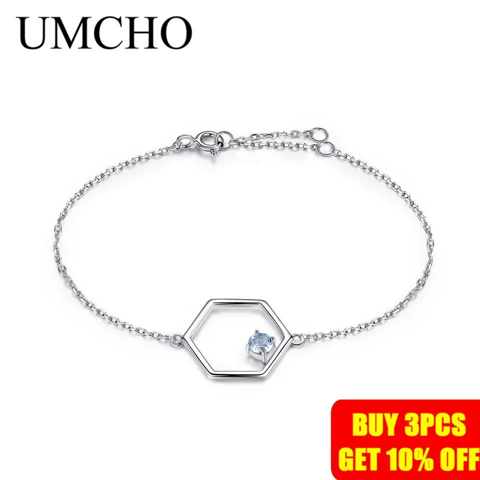 Special Offer UMCHO Natuurlijke Blauwe Topaas 925 Sterling Zilveren Armband Voor Vrouwen Blue Gemstone Zilver 925 Sieraden Kettingen Armbanden Discount 45% Today!