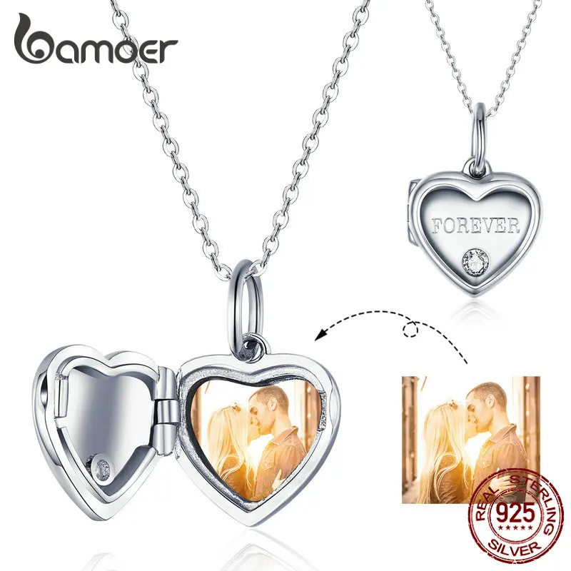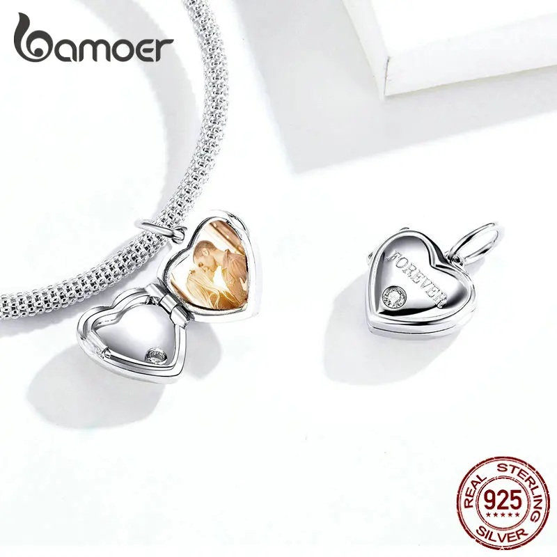 Special Offer Bamoer Custom Foto Gepersonaliseerde Hart Hanger Charm voor Originele Zilveren Armband en Ketting Geschenken Aangepaste Sieraden BSC102 Discount 30% Today!
