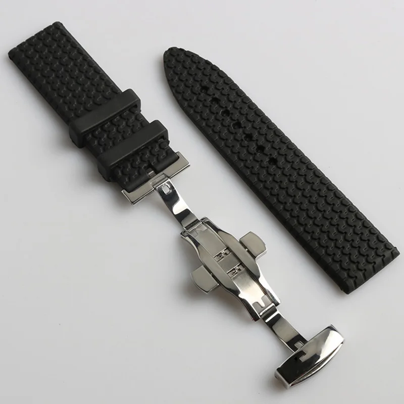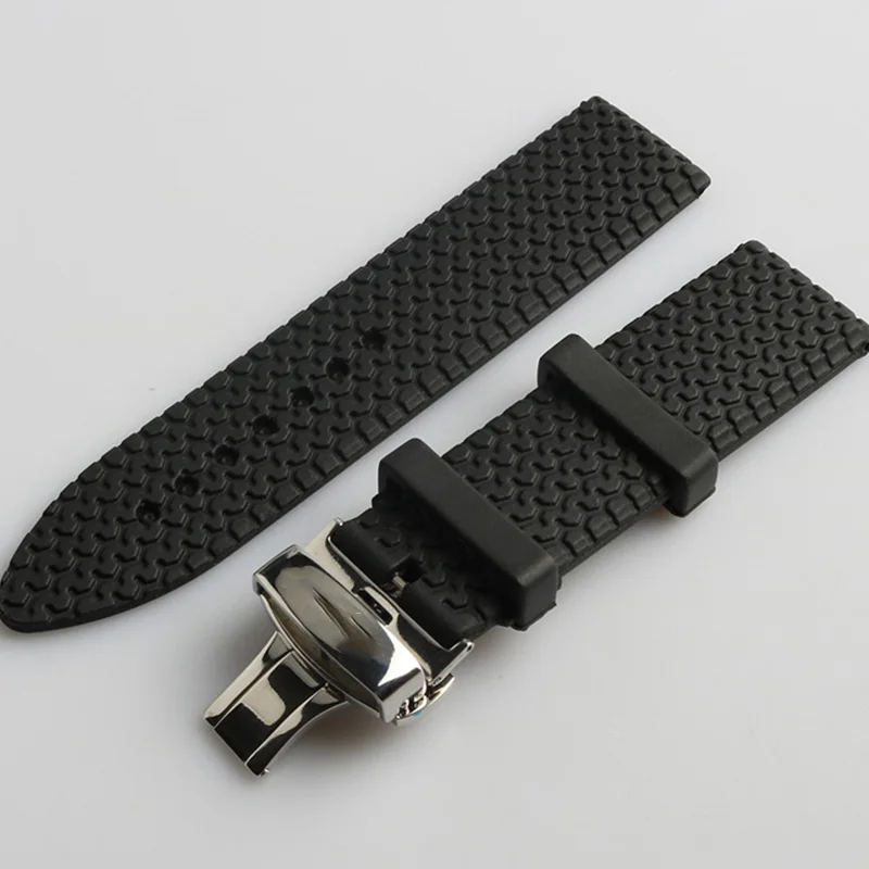 Special Offer 23mm zwarte rubberen horlogeband voor chopard horloge band met roestvrij staal vlinder gesp waterdichte armband Discount 39% Today!