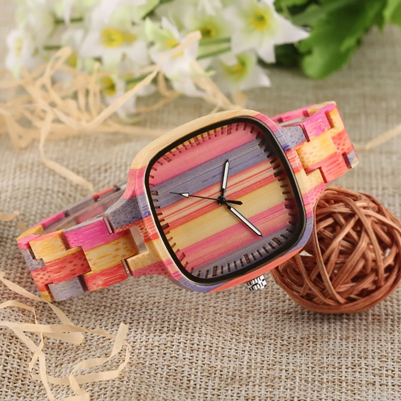 Special Offer Unieke Kleurrijke Houten Horloge Womens Volledige Houten Armband Dames Jurk Klok Milieubescherming Bamboe Horloge horloges vrouwen Discount 42% Today!