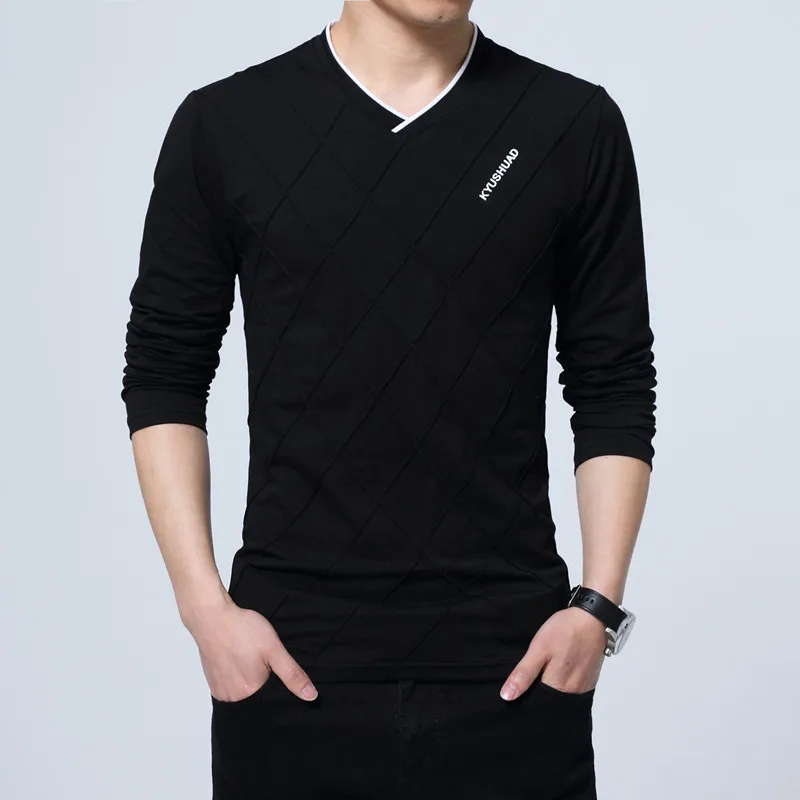 Special Offer 2019 Mens Casual T shirt Mode Slanke Lange Mouw V hals Fitness T shirts Tops Homme Tshirt Vriendje Gift Harajuku Streetwear Discount 45% Today!