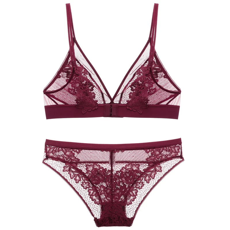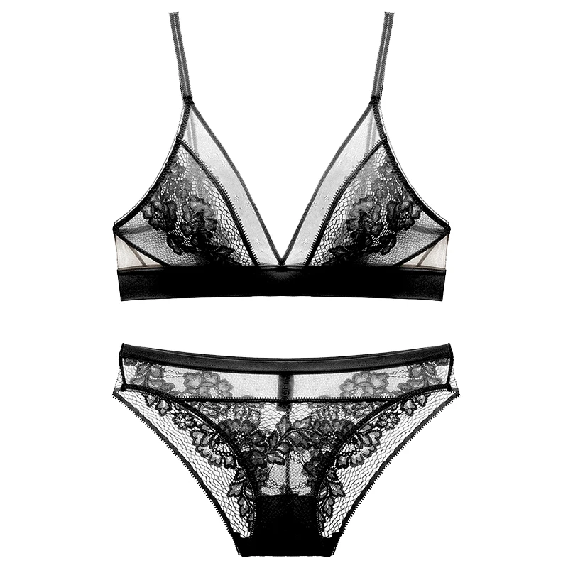 Special Offer Sexy Lingerie Hot bloem Kant Driehoek Ongevoerd Bralette Dunne Cup Zwart wirefree Bh Ondergoed Set Voor Vrouwen Discount 49% Today!