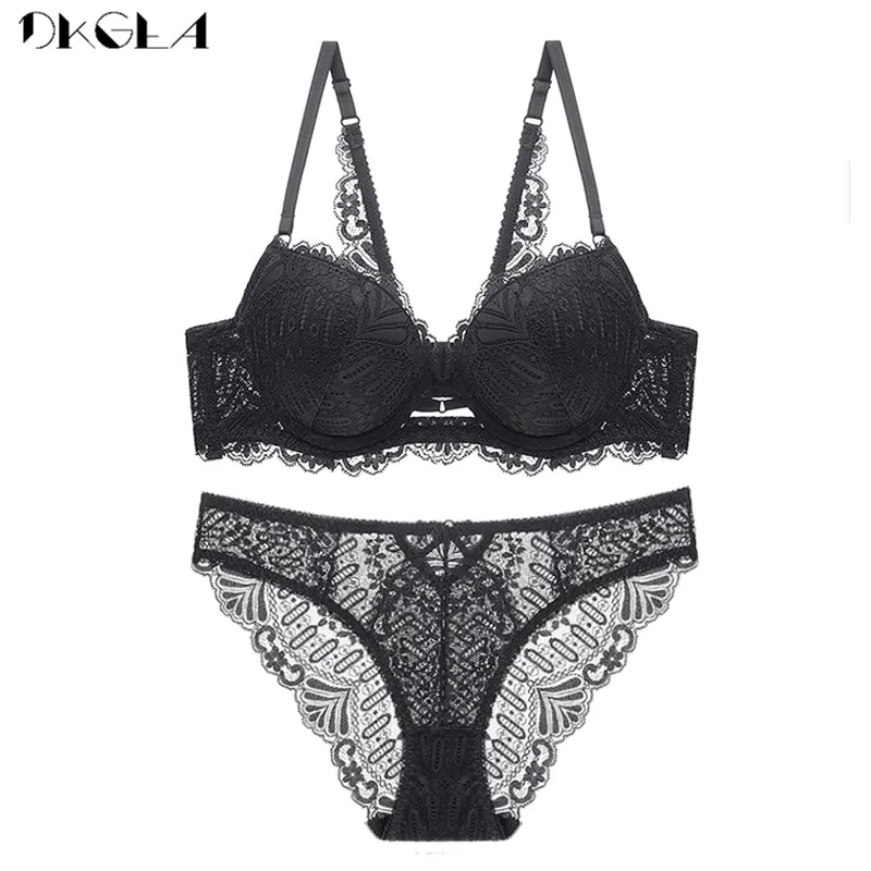 Special Offer Top Sexy Beha Slipje Set Borduurwerk Lingerie Dikke Grijze Kanten Ondergoed Sets Katoen Bras Push Up Zwarte Vrouwen Brasserie Diepe V Discount 50% Today!