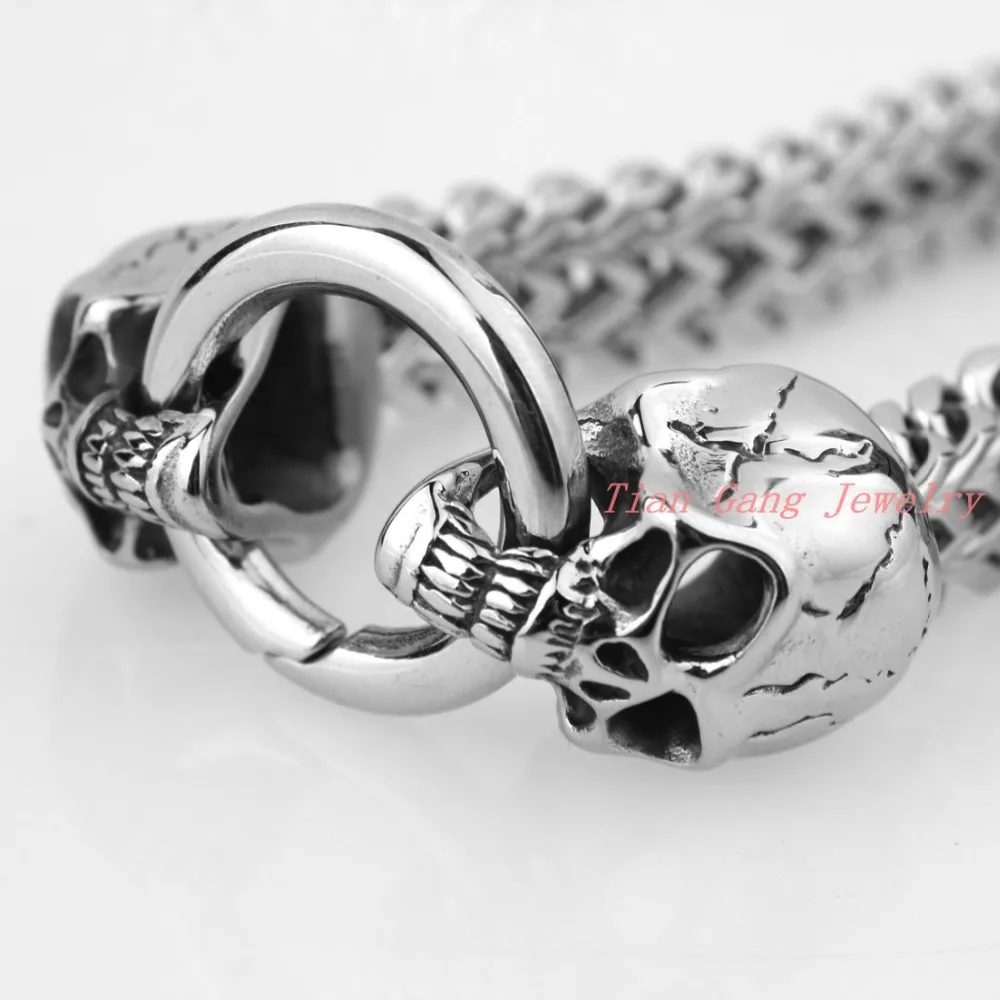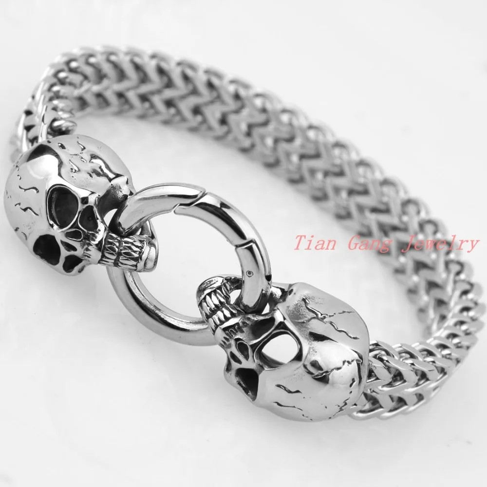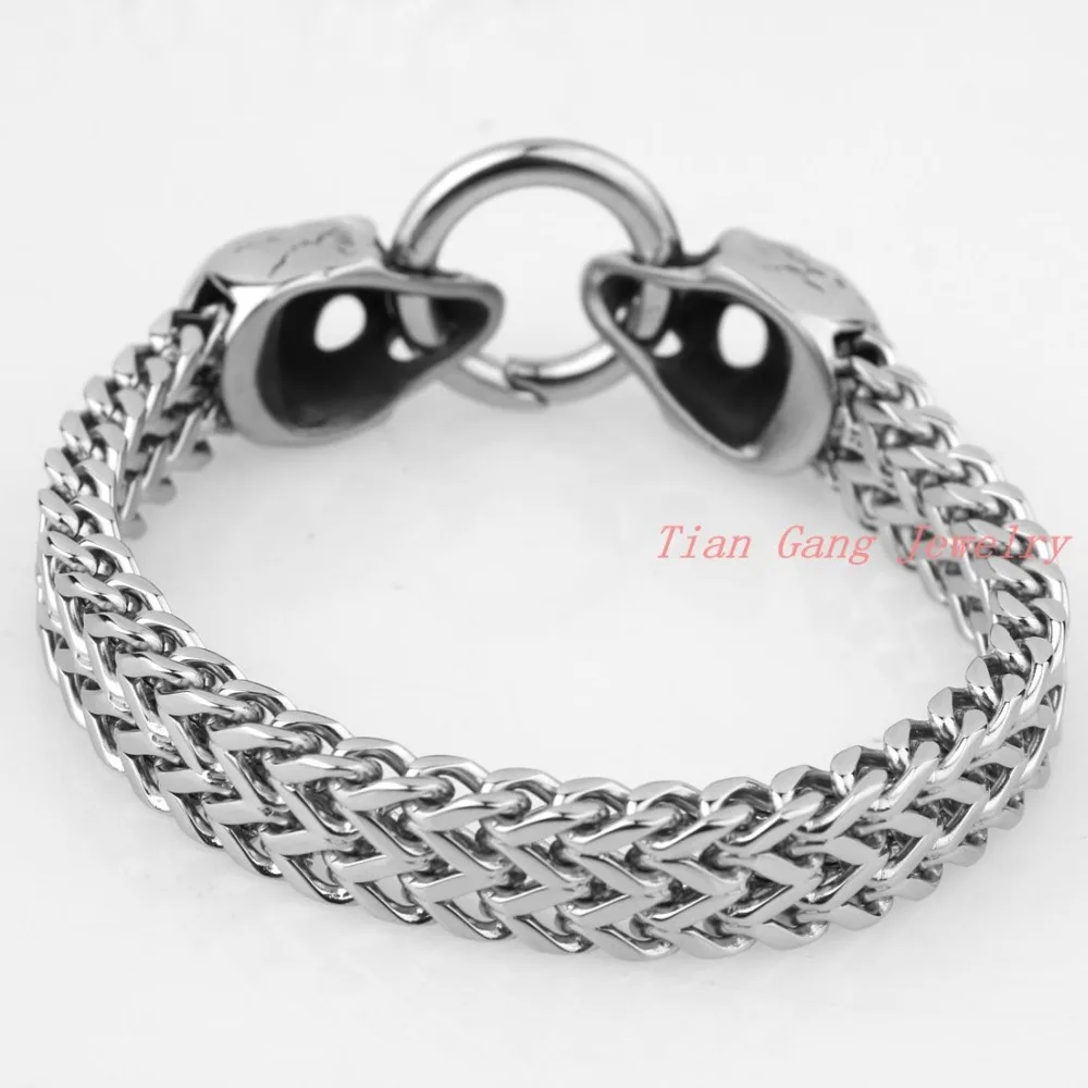 Special Offer Punk Stijl Zilveren Schedel Rvs Armbanden Charms Mannen 12 MM Brede Armband Retro Link Chain Bangles Mode sieraden Discount 10% Today!
