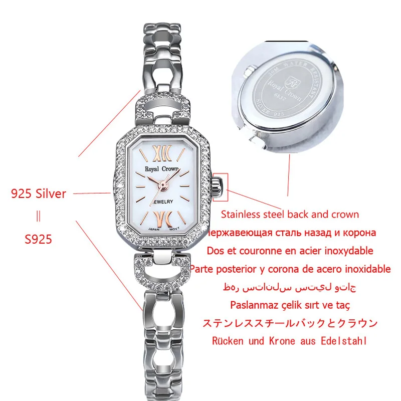 Special Offer S925 Sterling Silver Royal Crown Dame vrouwen Horloge Japan Quartz Sieraden Uur Fijne Klok Kristal Armband Luxe meisje gift Discount 20% Today!