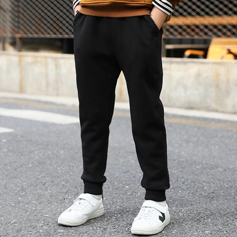 Special Offer 2019 Kinderen Jongens Broek Katoen Lente Single Layer Sport Broek Casual Fall Winter Solid Wit Zwart Warm Add Wol joggingbroek Discount 21% Today!