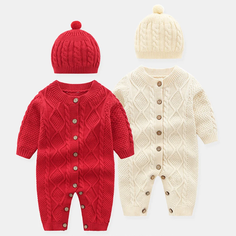 Special Offer IYEAL Pasgeboren Baby Jongen Meisje Kerst Kostuum Katoen Gebreide Baby Rompertjes Met Hoed 2 STUKS Winter Kruipen Kinderkleding Jumpsuit Discount 32% Today!
