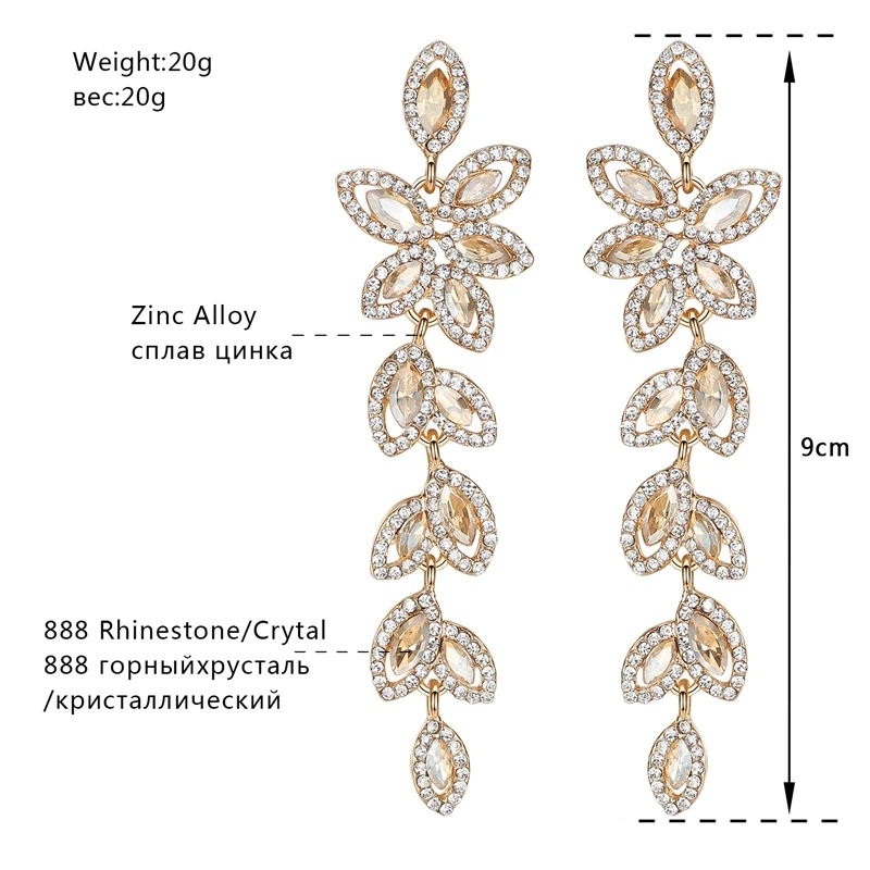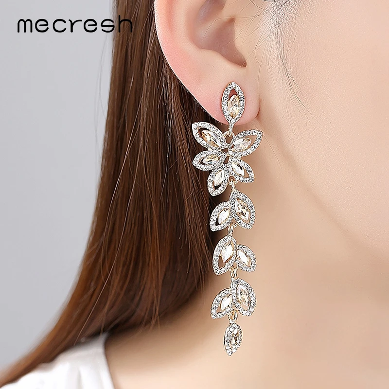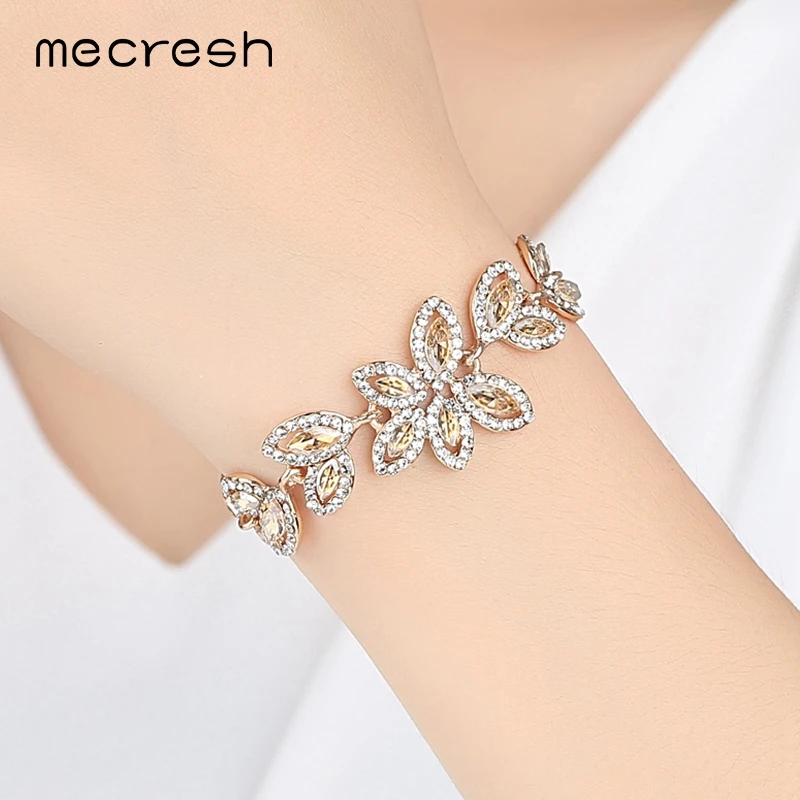 Special Offer Mecresh Top Champagne Kleur Kristal Sieraden Sets Bladeren Oorbellen Armbanden voor Vrouwen Bruids Sieraden Sets SL046 + EH282 Discount 35% Today!