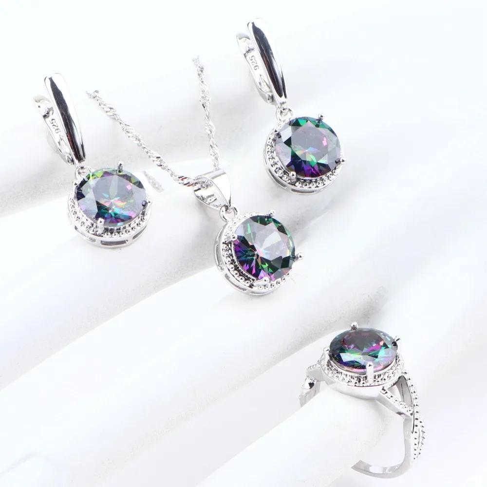 Special Offer Magic Rainbow Stenen 925 Sterling Zilveren Sieraden Sets Zirconia Oorbellen Ringen Voor Vrouwen Armbanden Hanger Ketting Set Gift Box Discount 36% Today!