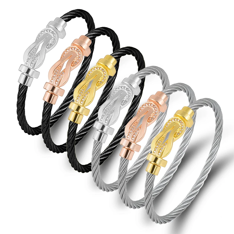 Special Offer J. Hanghe Bijoux Acier Inoxydable Femme Hommes Luxe Zirkoon Houdt Bangles Magneet Gesp Kabel Draad Mannen Vrouwen Armbanden Sieraden Discount 16% Today!