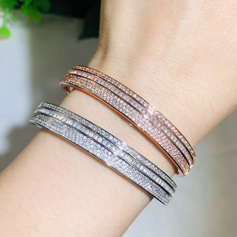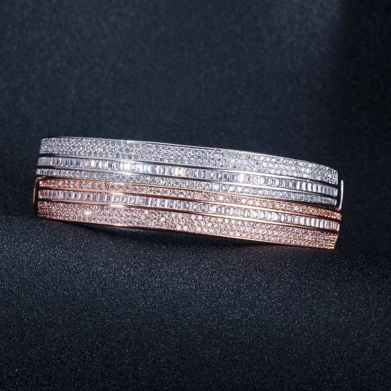 Special Offer Cwwzircons Mode Beroemde Merk Sparkling Zirconia Rose Gold Kleur Open Manchet Armband Armbanden Voor Vrouwen Sieraden Gift BG011 Discount 30% Today!