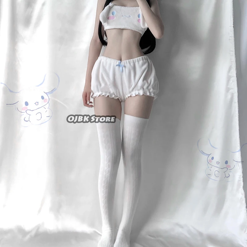 Special Offer Ojbk Sexy Anime Cosplay Kaneel Hond Kostuums Lange Oor Doggy Beha En Bloeiers Roze En Wit Kwaii Fluwelen Tube Top slipje Set Discount 30% Today!