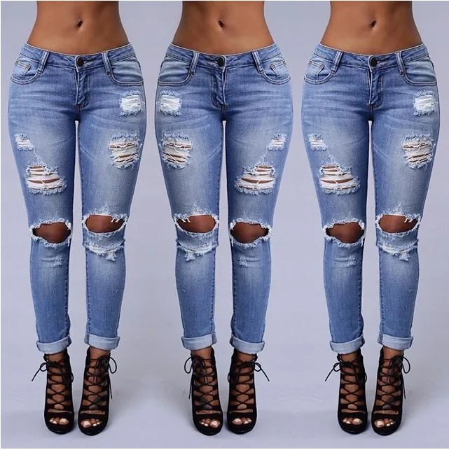 Special Offer Boutique Stretch Katoen Gat Vriendje Potlood Jeans Blue Ripped Jeans Vrouw Denim Broek Broek voor Vrouwen Potlood Skinny Jeans Discount 33% Today!
