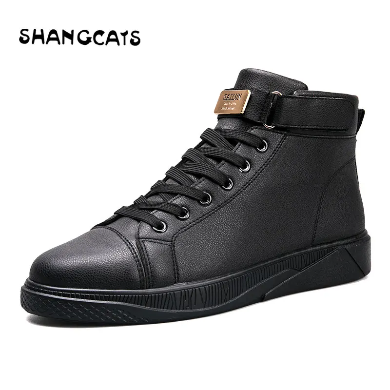 Special Offer Trend 2019 mannen Gevulkaniseerd Schoenen Zwarte Hoge Top Lace up Herfst Winter Casual Canvas Schoenen Voor Mannen Jongens sneakers Zonder Kant Discount 35% Today!