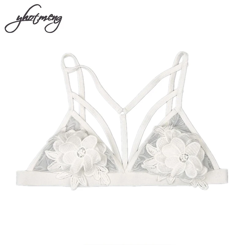 Special Offer Yhotmeng Kant Bralette Set Applicaties Lady Sexy Lingerie Set Draadloze Bh Set Bandage Bloem Transparante Dames Bh Set Discount 48% Today!